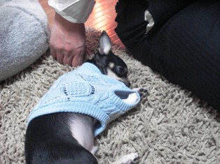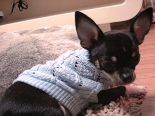 ニットかんだら毛糸がみょーんってなりそうで・・そっこー脱がしました。
