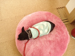 明らかに嫌そうなお目目してるよねー。笑 テンション低いの、見てるだけでひしひしと伝わってくるし。 ・・・で、思いっきり寝たふりしてー ![]() なんてかわいーの ![]() いやー、早くお散歩シーン見たいわー ![]()